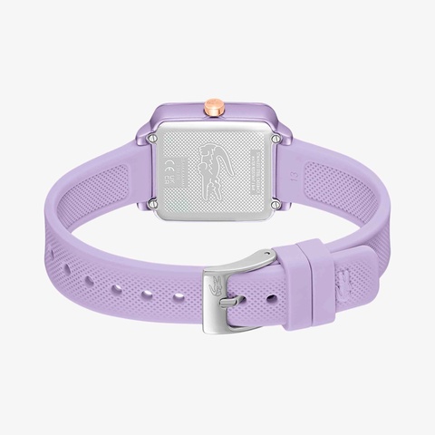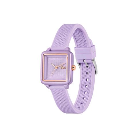 ラコステの名作ポロシャツの名を冠したスクエアパープルフェイスのウィメンズウォッチ