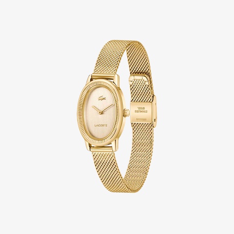 リュクスな輝きを放つゴールドトーンが華やかさを添える、エレガントなオーバルウォッチ