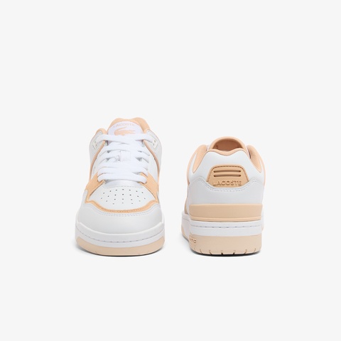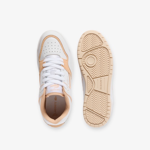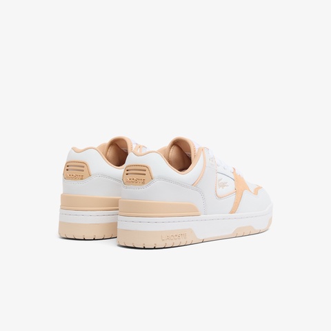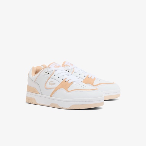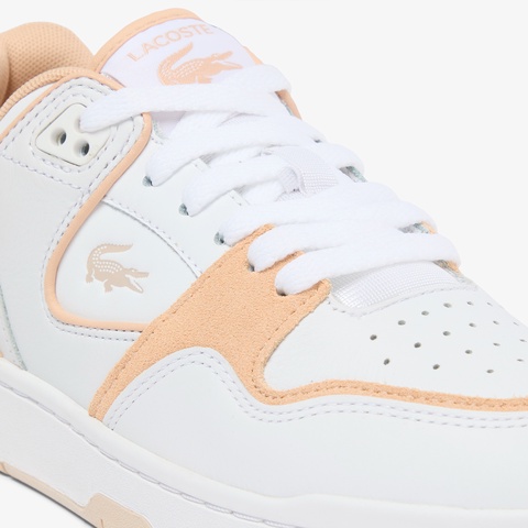 クリーンなホワイトレザーにベージュスエードの切り替えが映えるレディーススニーカー
