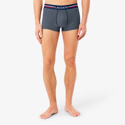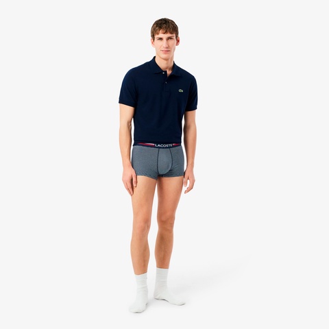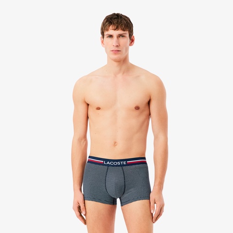 マイクロボーダー柄にトリコロールウエストバンドを配したストレッチコットントランクショーツ