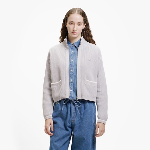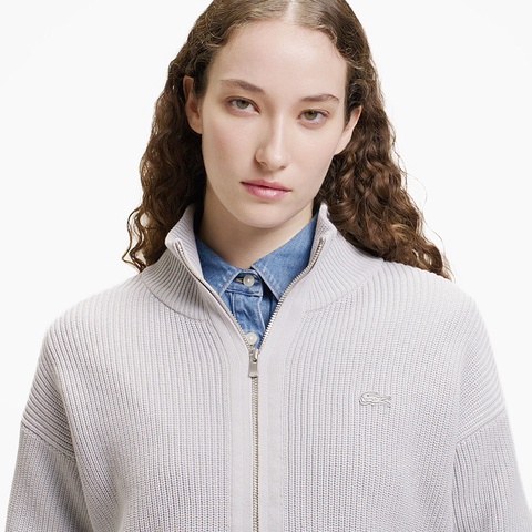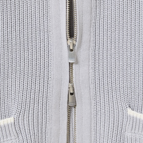 ローゲージニットならではのヌケ感が際立つジップアップニットブルゾン