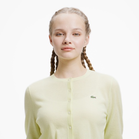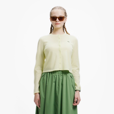 キラリと光るラメ感が高級感を生む丸首ニットカーディガン