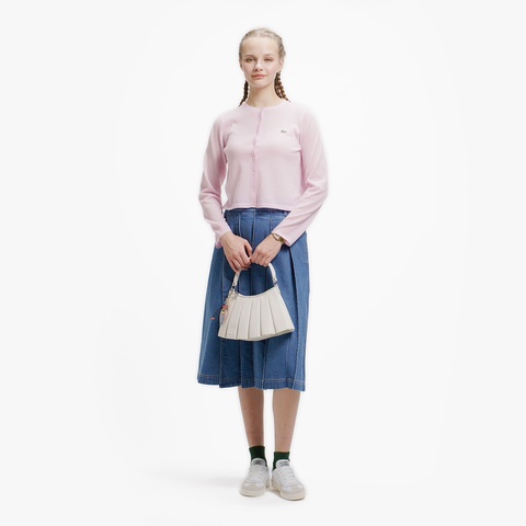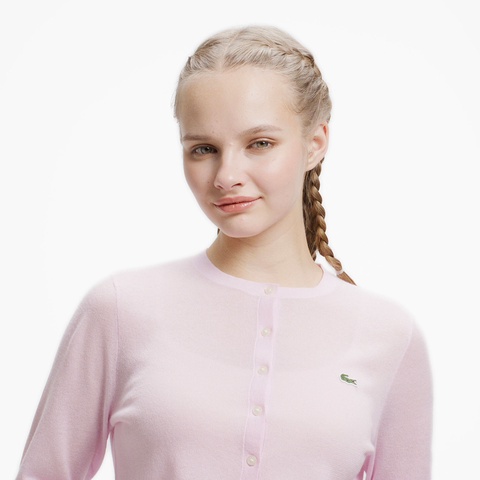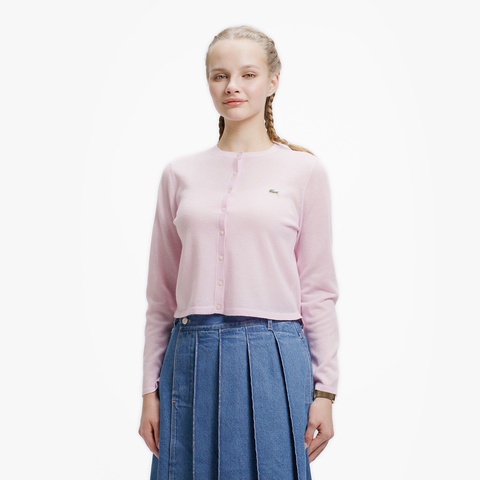 キラリと光るラメ感が高級感を生む丸首ニットカーディガン