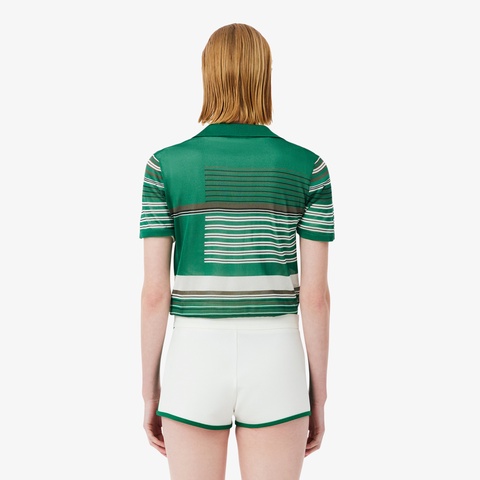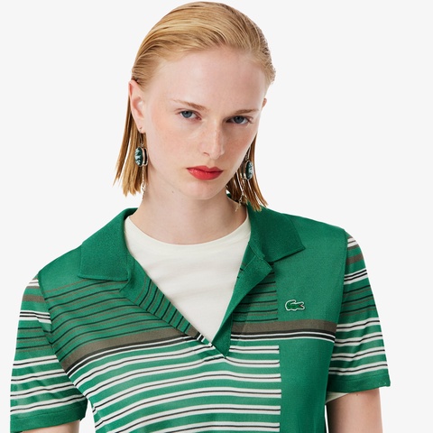 ツヤやかなサテンタッチにランダムなボーダー柄が映えるランウェイポロシャツ