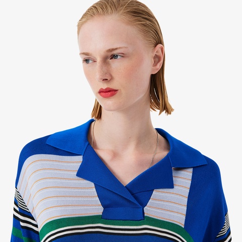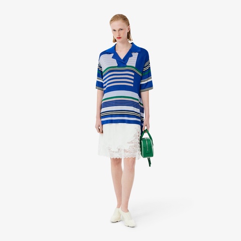 大胆なオーバーサイズで仕立てた、マルチボーダー柄のランウェイポロシャツ