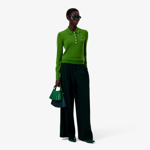 ハイクオリティなメリノウールで仕立てたスムースタッチのポロカラーニットセーター