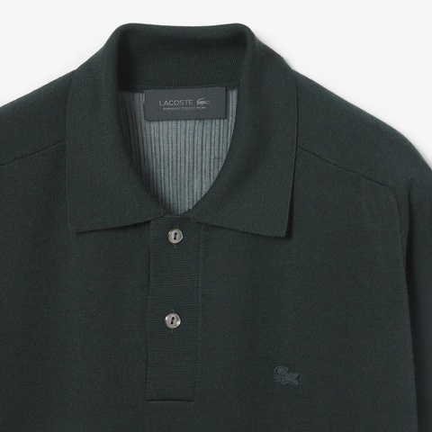 ・ポロシャツ由来のリブニットカラー&ボタンプラケット