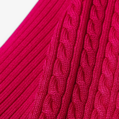 ・光沢感のあるレーヨン×ポリアミドのケーブル&リブニット素材