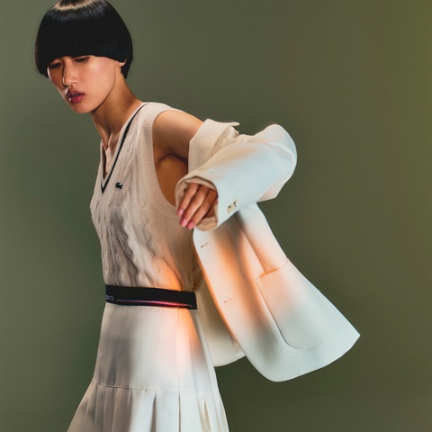 ・Vネックラインと裾口にボーダーを配したエッセンシャルなチルデンニットデザイン