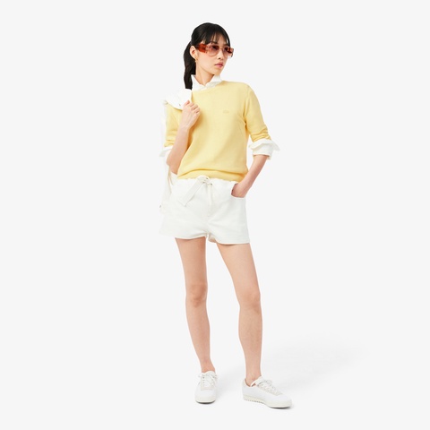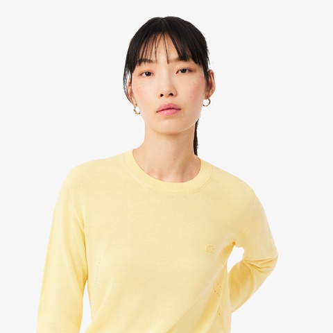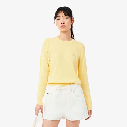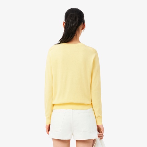 ・エレガンスな表情を加える、各所に配したレース調の透かし編み