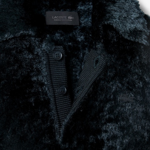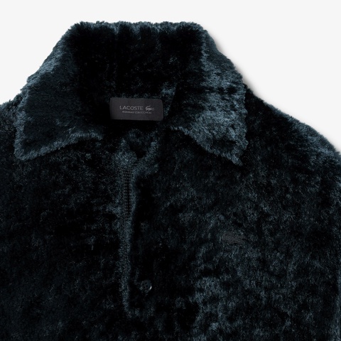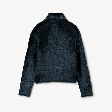 毛足の長いベルベットタッチのシャギー素材がゴージャスなポロカラーニット