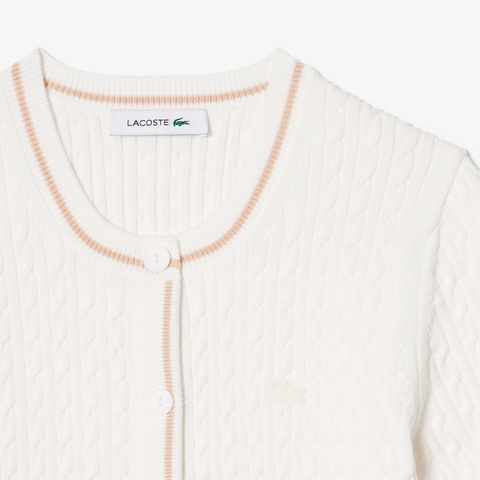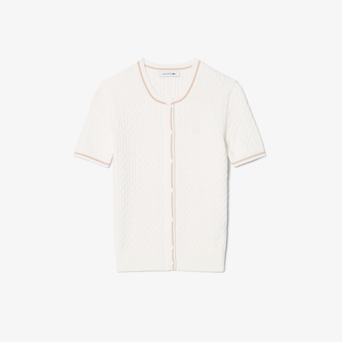 クラシックなケーブル編みが上品な表情を演出するショートスリーブニットカーディガン