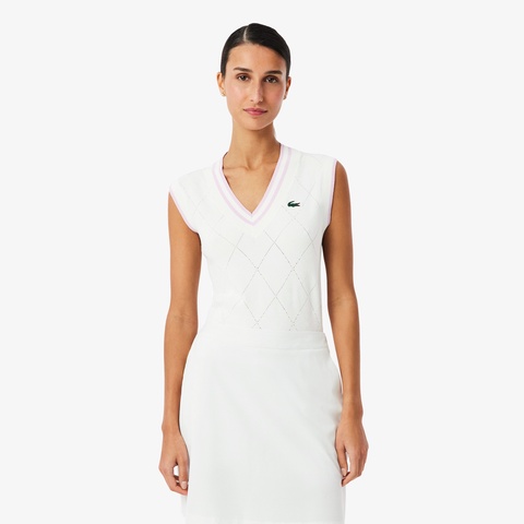 アーカイブ由来のダイヤモチーフを軽やかに編み立てたストレッチニットベスト