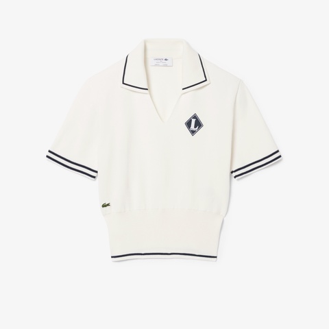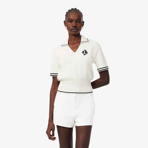 フェミニンなスポーティーさにフランスメイドの品格が際立つスキッパーネックポロシャツ