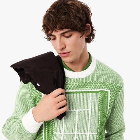 ランウェイ着想のテニスコート柄を、立体感のあるジャカードで表現したニットセーター