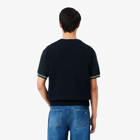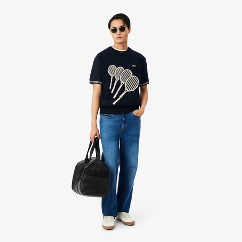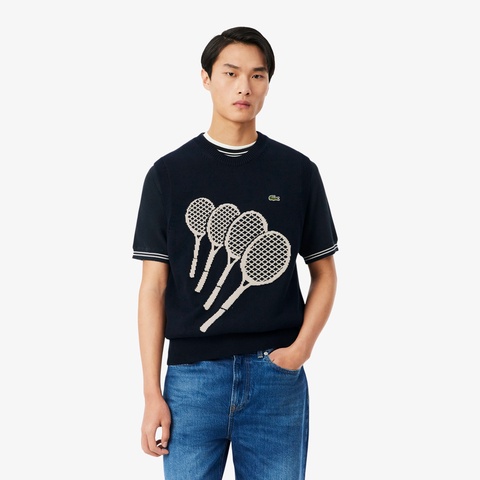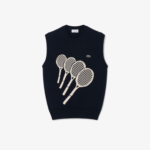 ラコステの原点であるテニスラケット柄を大胆に描いたジャカードニットベスト