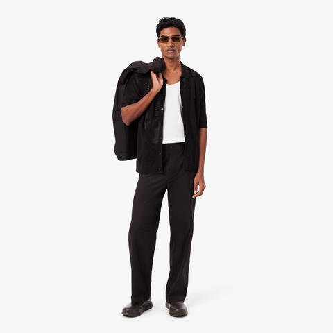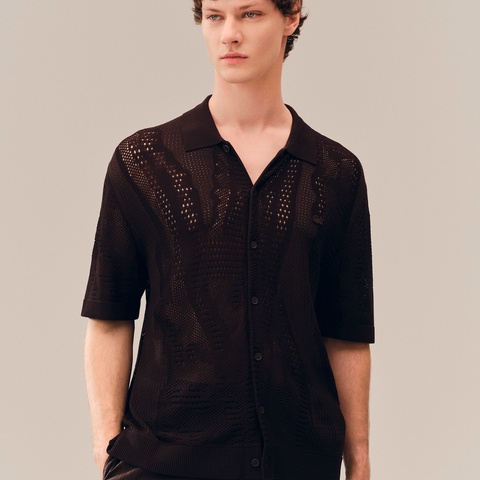 大胆なシースルーデザインが存在感を放つ柄編みのニットシャツ