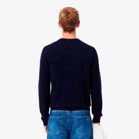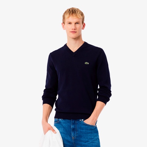 ラコステのワードローブに欠かせないセーター オーガニックコットンを使用したエッセンシャルセーター。ボディと袖に自然なゆとりを持たせたジャージー素材のVネックセーターです。ヘリンボーン柄のコントラストが効いたインナーネックと右下袖にあるコントラストラインが特徴的な一枚です。