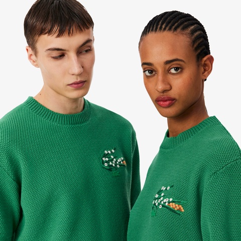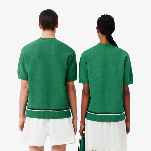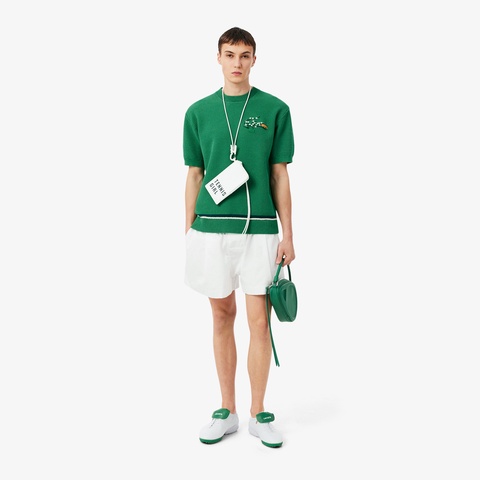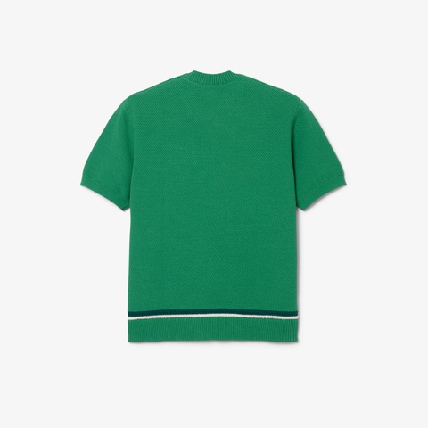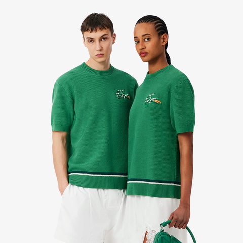 立体感のある編み地に、フローラルモチーフのワニロゴが映えるランウェイニットTシャツ
