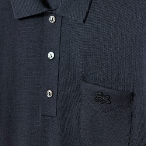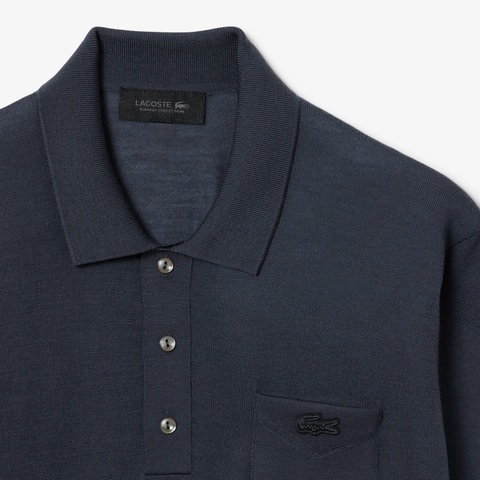 シンプルなデザインがエレガントな素材感を際立たせるメリノウールポロカラーセーター