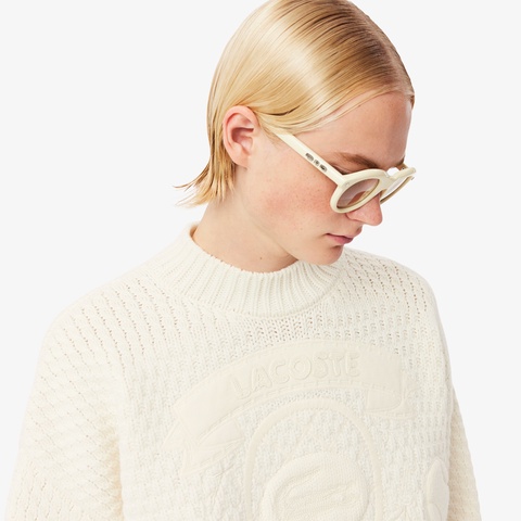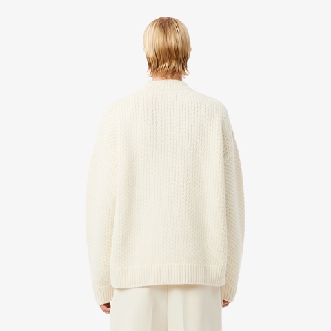 エレガントなグラフィックワークが際立つウールニットセーター