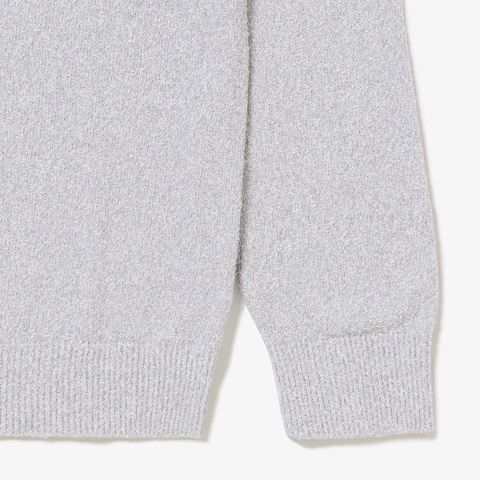 表情豊かなブークレー調の杢ニットで仕立てたヘンリーネックセーター