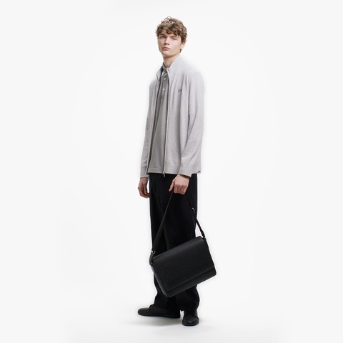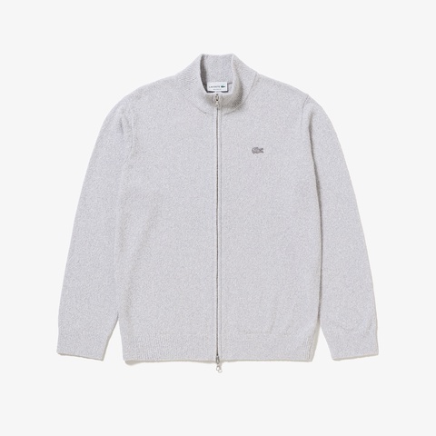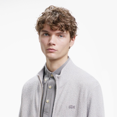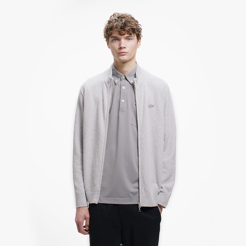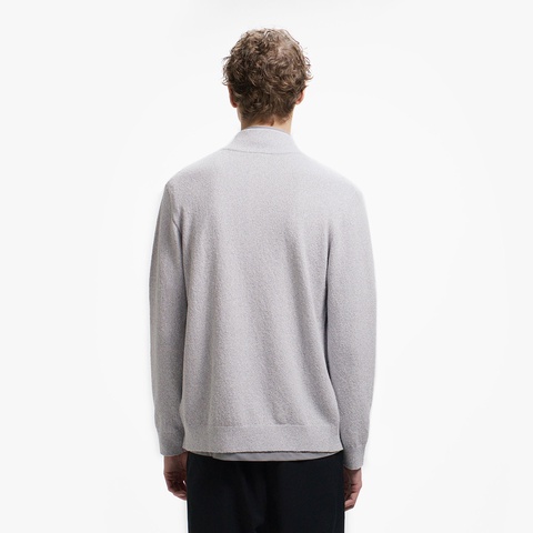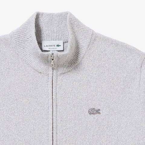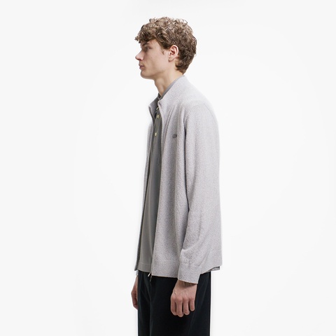 柔らかなブークレー調ニットで仕立てたスタンドジップニットカーディガン