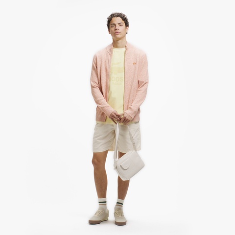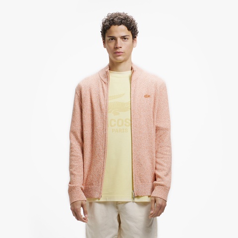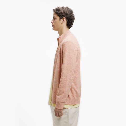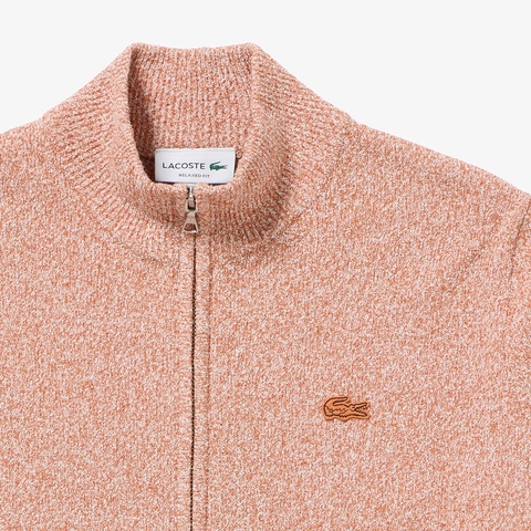 柔らかなブークレー調ニットで仕立てたスタンドジップニットカーディガン