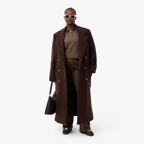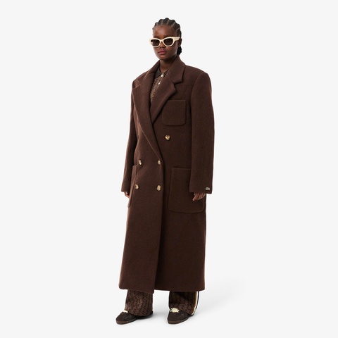 ランウェイコレクションに着想を得たエレガントなダブルブレストバージンウールコート