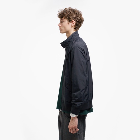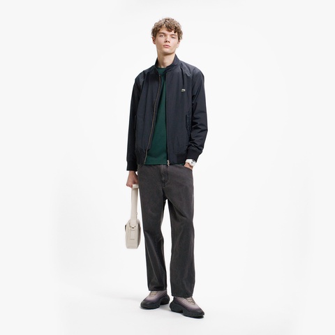 チンストラップを備えたスタンドカラーに、フラップ付きのポケット、袖・裾のリブニット。スイングトップジャケットのベーシックディテールを踏襲しつつ、ボディマテリアルは2.5レイヤーの高機能素材でアップデート。クラシックなデザインに現代的な機能を付与した、ラコステらしい1着です。