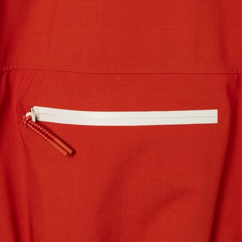 ・左袖と背面に、配色ファスナーのジップポケット