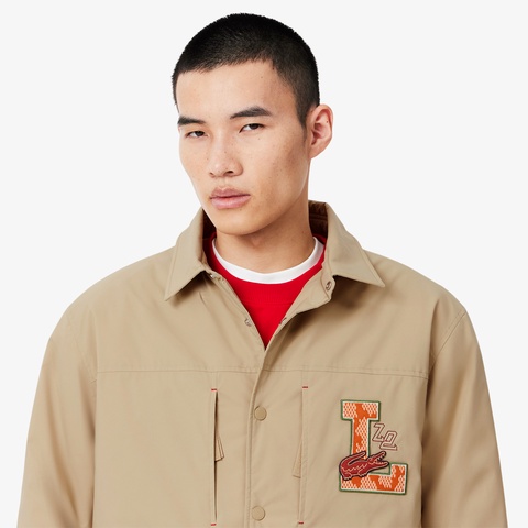 ・カレッジスタイルを彷彿とさせるイニシャルワッペン