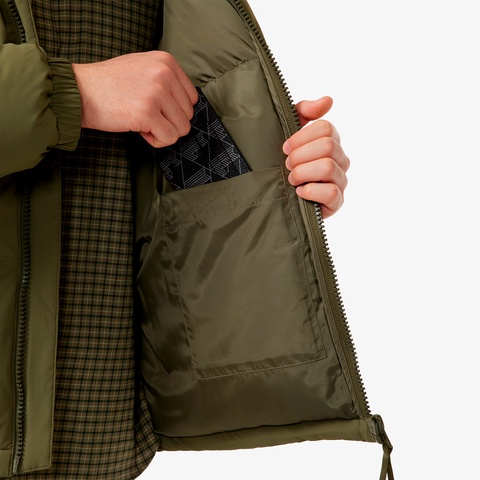 テクニカルファブリックとボリュームダウンで仕立てたフーデッドジャケット