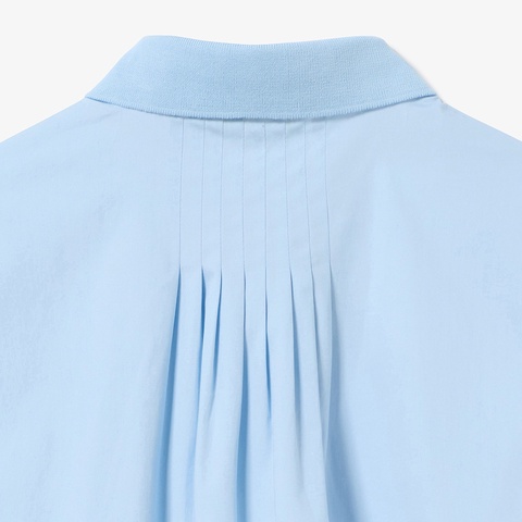 ・エレガンスを演出する背面襟元のタックフレア