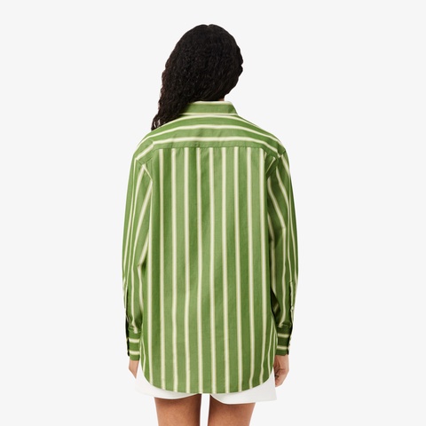 クリーンなストライプ柄をオーバーサイズで着崩すコットンポプリンシャツ