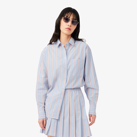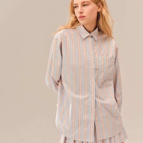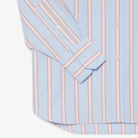 クリーンなストライプ柄をオーバーサイズで着崩すコットンポプリンシャツ