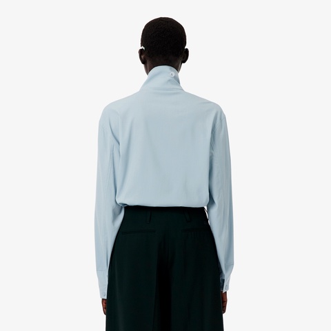 エレガントなスタイルにミリタリーのDNAを混ぜ合わせたウールブレンドクレープシャツジャケット