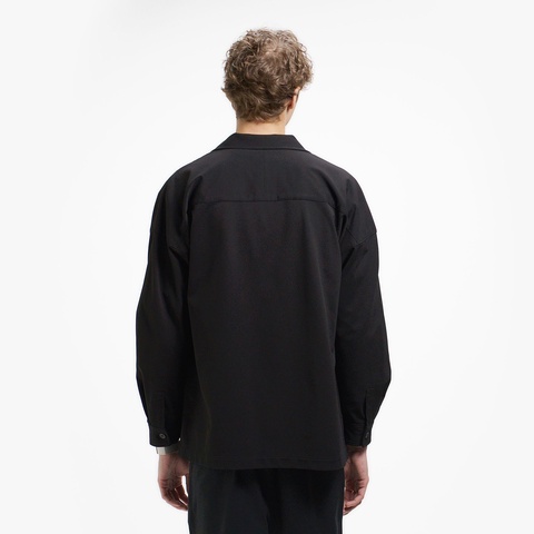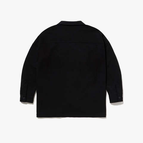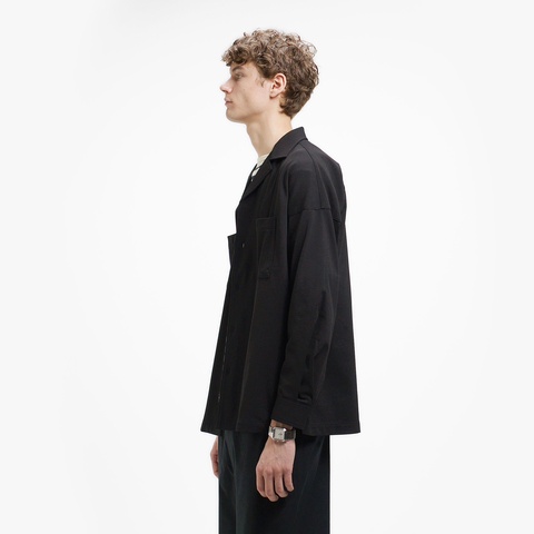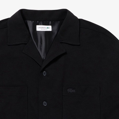 ブランドのアイコン素材を用いたオープンカラーシャツジャケット