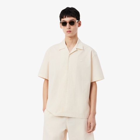 シアサッカーオープンカラーシャツ