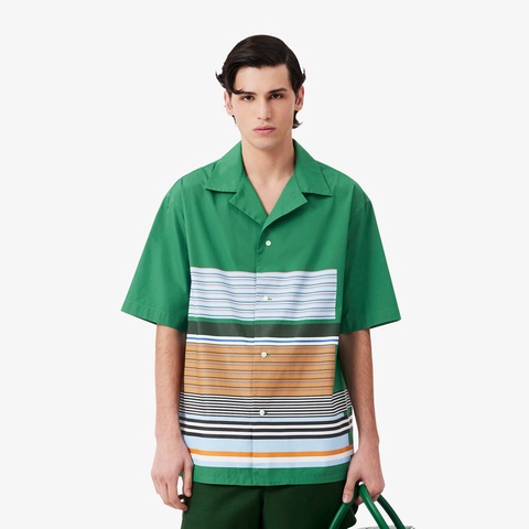 不規則なマルチボーダーが映える、コットンポプリンのランウェイシャツ
