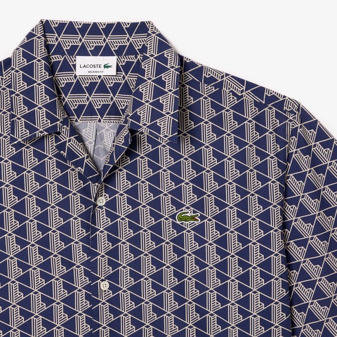 エレガントなモノグラム柄を全面に配したオープンカラーシャツ