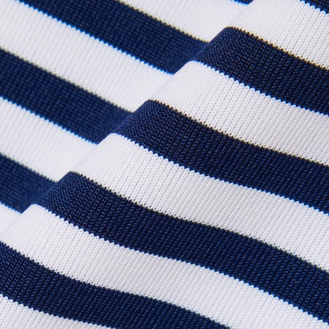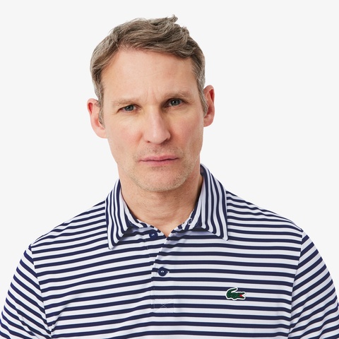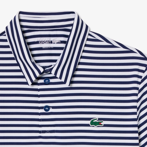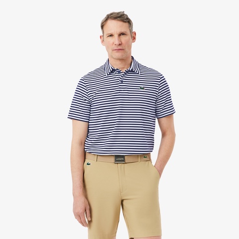 クリーンな出で立ちに現代機能を備えるボーダーゴルフポロシャツ