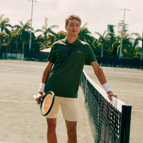 アシンメトリーなラケットグラフィックが個性的なウルトラドライテニスポロシャツ