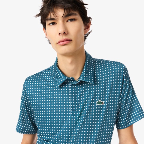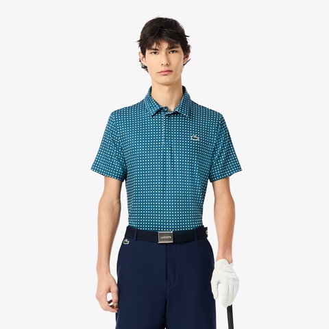 ミニマムな総柄プリントを配したウルトラドライゴルフポロシャツ