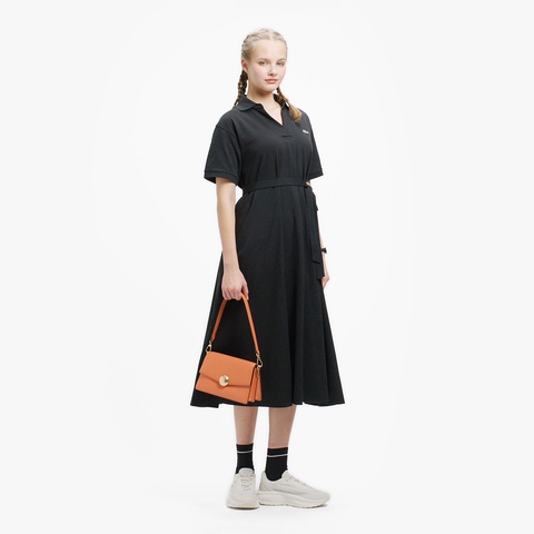 スポーティーな風合いとエレガンスを兼ね備えるスキッパーネックポロドレス