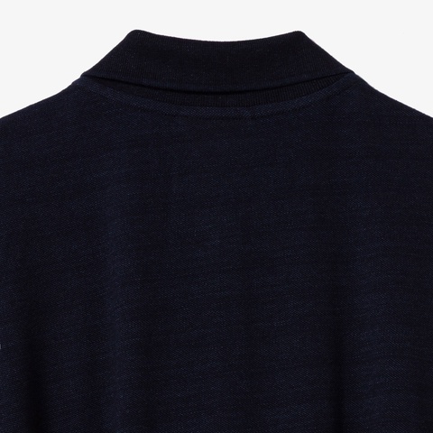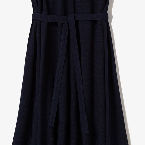 インディゴ鹿の子の表情が際立つマキシ丈ポロドレス