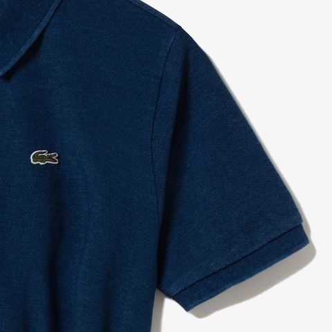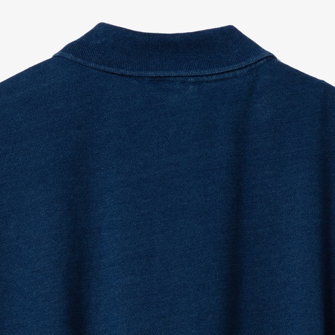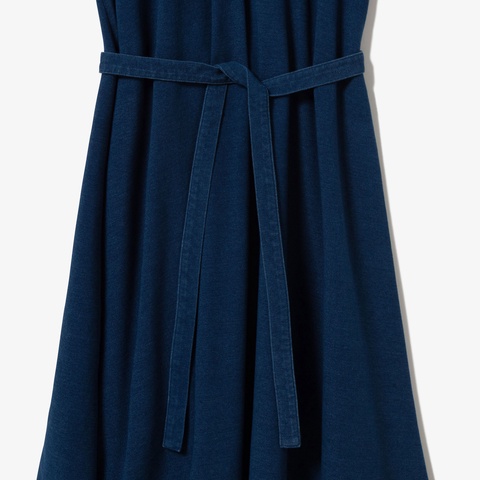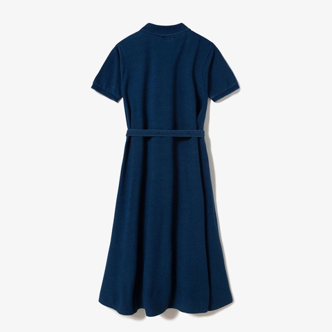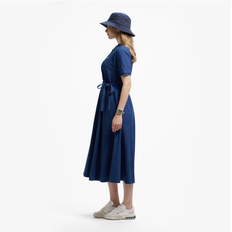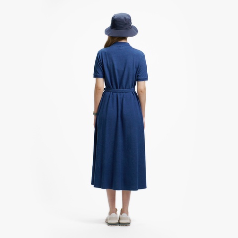インディゴ鹿の子の表情が際立つマキシ丈ポロドレス