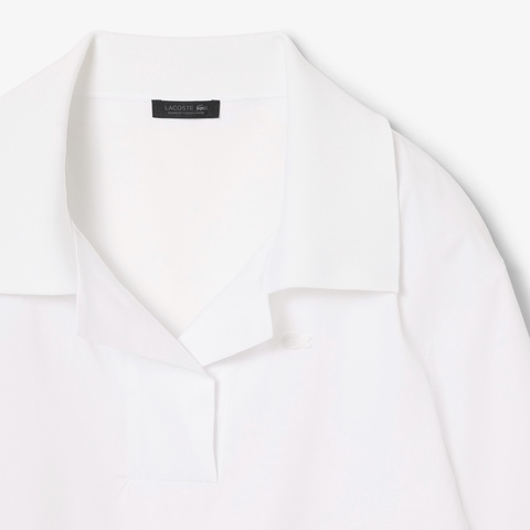 軽やかなコットンポプリンに、ワイドポロカラーを組み合わせたランウェイオールインワン