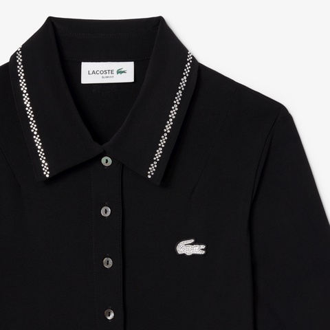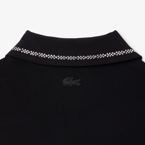 ・襟元と胸のワニロゴパッチにラインストーンをあしらったリュクスなデザイン