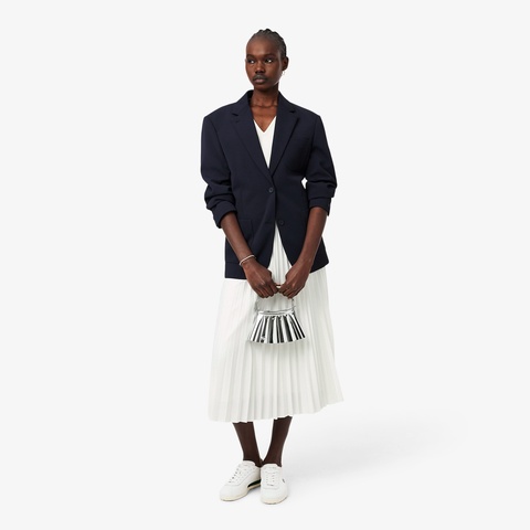 ・エレガントに揺れるロング丈のプリーツスカート